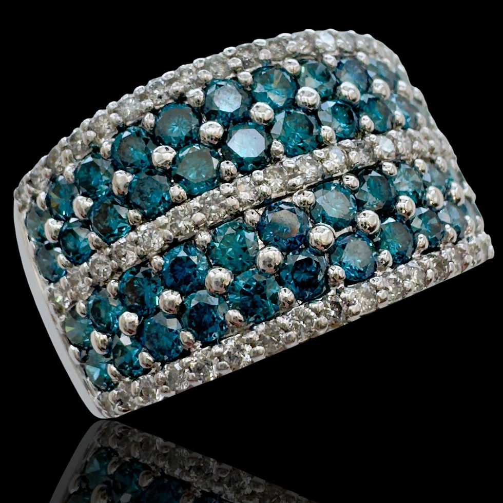 Estate 10K gold natural diamond & natural colored enhanced blue diamonds ring